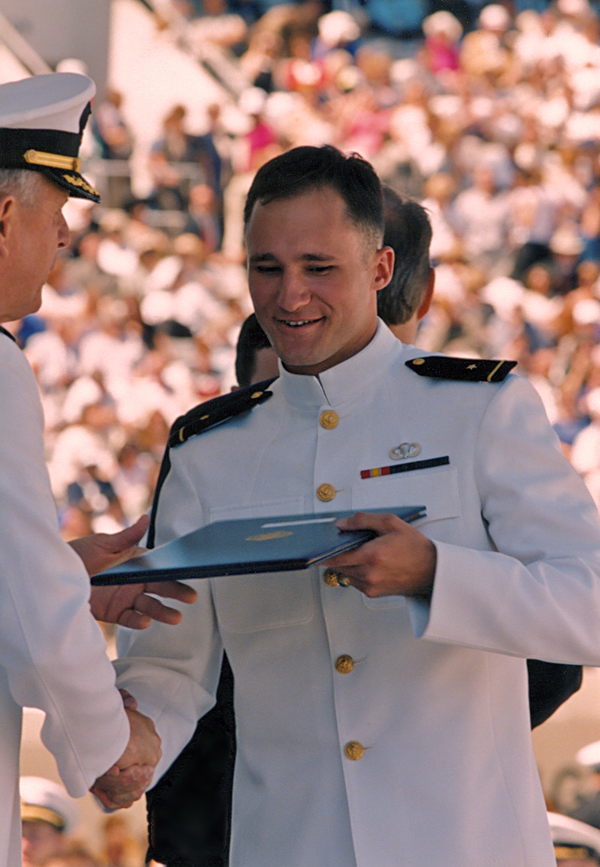 Brian Wiechowski – ‘97 grew up in Metuchen, New Jersey, and was nominated for appointment to the US Naval Academy by Representative Frank Pallone in the Congressman’s first year in office. Brian knew from an early age that he wanted to be a pilot, so USNA was a natural place to go. Brian graduated with the Class of 1997 with a Bachelor of Science in Oceanography/Applied Physics.