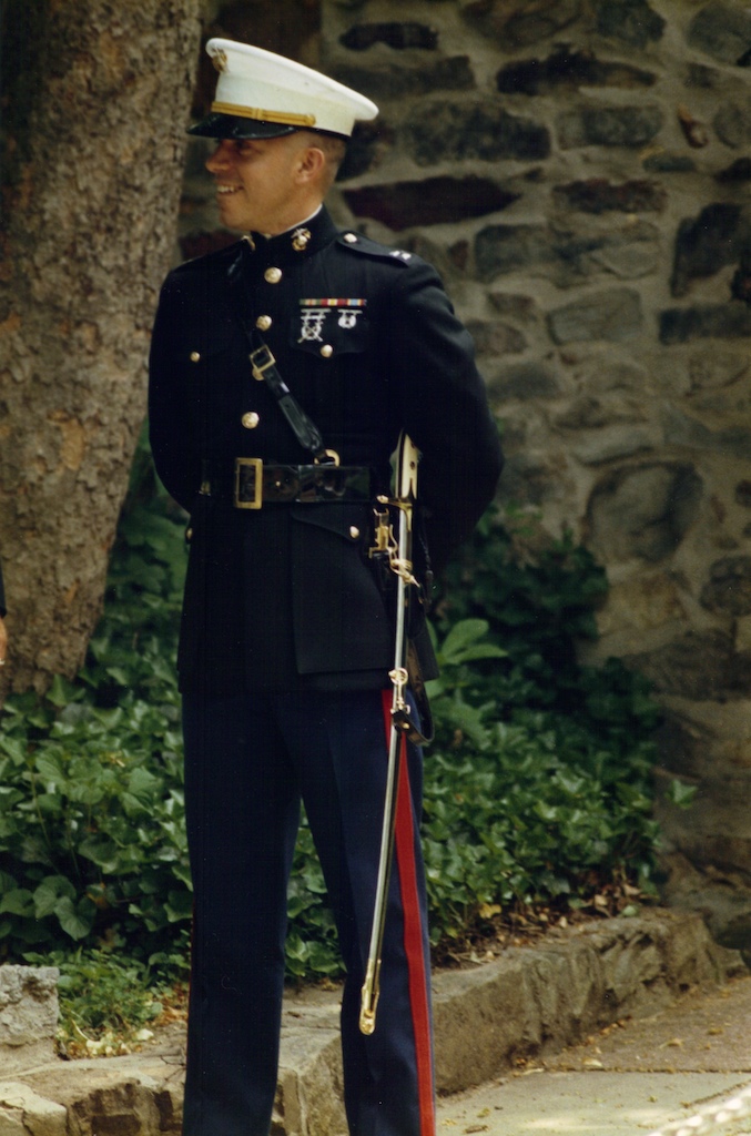 I loved my experiences at the Naval Academy and in the Marine Corps. It was a great honor to serve with and a privilege to lead the young men and women of the United States Marine Corps. At times, I found myself at odds with my gay life and the military life, so I was always very careful to keep them separate. I have always been grateful for the opportunities the Naval Academy and my military service have afforded me in the private sector, where I have been very successful and also now free to live as an openly gay man. My military career was in the fast track, I was punching all of the ‘right’ tickets, but it was becoming more and more difficult to lead separate lives. I served before the era of ‘Don’t ask, don’t tell’ and the hypocrisy of the ban finally got to me at my last command when, as the Officer of the Day, I had to sign the confining orders of a young Marine who just had been convicted in a General Court Martial of being a lesbian.